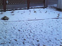 今日はちょっと暖かかった。玄関前に並べていた来春用のコンテナを、屋根からの落雪がない方に移動させた。割れやすい素焼きの鉢は積雪による重さの負担を減らすため、壁に立て掛けているラティスの影に置いた。その作業中、ずっと置き放しにしてあったブロックを移動させようと持ち上げた時なにやら小さな物が素早く動いた。蛙?と思ったが動きが違う。(今時期蛙はいないと思うが・・・)走っていた場所を追ってみると小さいねずみだった。自分の家の周囲では初めて見た。家に入らなきゃいいけど・・・。その前に、このコンテナ達が危ない。話しに聞くところ、ねずみが球根を食べてしまうらしい。しかしコンテナを置く場所はここしかないし・・・。来春無事咲いてくれることを祈るしかない。