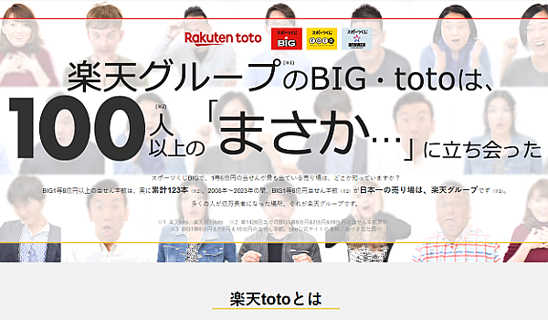 出典:楽天銀行楽天銀行ニュースメールが届く...「2025年、今年だけで楽天銀行から億万長者が8名誕生!」。 私が楽天銀行口座を開設した理由は、ロト宝くじ購入とネットバンキング管理が無料、ほかのサービス利用も楽天口座があると簡単で便利です。totoやBIGはしませんが、『高額当選8名』 ~うらやましい限りです。楽天totoに利用登録(無料)してネットで購入、あとは待つだけです。楽天totoとは?楽天totoは、楽天グループの『楽天銀行』が提供するサービスです。『最高6億円くじBIG』や『toto』などが購入できて、利用登録は無料。 BIGは、コンピューターがランダムで試合結果を自動選択する予想のいらないクジ。 totoは、サッカーの試合結果を自分で予想するクジです。「楽天会員」であれば、楽天totoに『無料会員登録↓』するだけで利用可能!※詳細および登録はバナーより↓楽天カードや楽天銀行口座をお持ちの方は、今すぐに購入できます。 楽天キャッシュでも購入できて、楽天ポイントも貯まります。 当選金は自動的に銀行口座に振り込まれます。 ご利用条件:楽天カード、JCBカードまたは楽天銀行口座を保有(19歳以上)。楽天カードを保有して、まだ3年の私ですが、楽天銀行のメニューをポチるだけで「totoやBIG」を購入できます。 ~サッカーの予想はわからないので、自動選択クジを今度購入しようかな...。追記:実際に「BIG」を初めて購入してみました楽天口座を持っている私は、メニューからポチるだけ自動登録になります。 メニューには、宝くじや競馬、株取引など色々なサービスがあり、すぐに始めることができます。以下は選択画面です。 1口100円からと安い~最高2億円の1口100円×5口=500円を購入しました。 払い戻し結果は9月24日のようです。 楽天ポイントが5ポイント獲得となりました。※詳細はこちら↓楽天totoを選ぶメリットとは?当選本数が多い。 多くの億万長者を生み出してきた事実が、楽天totoの一番の魅力。いつでもどこでも買える。 楽天totoはPC・スマホに対応。 いつでもどこでも簡単に「くじの購入や結果の確認」ができます。定期購入サービスがある。 購入したいタイミング(毎開催回・曜日・六曜など)を選び定期購入できます。 買い忘れがなく、取り消しも簡単です。楽天ポイントが貯まる、使える。 特に楽天カード決済ではポイント2倍でお得です。キャンペーンが豊富。あなたも、私も?…楽天totoで『億万長者』になるのも夢ではありません。EZORISUの役立つ便利な情報雑学よく読まれている記事一覧を見る新着記事一覧(新しい順)を見る人気のブログはこちらランキング参加中にほんブログ村楽天カードを持つだけで、お買い物のポイント倍率UP!。カードを使うと、メールやアプリで即通知。マイページで楽天ポイントやカード利用を一括管理できます。※年会費:永年無料。ポイント受取のステップ例:特典5000ポイントの場合STEP-1楽天カードをお申し込み(オンライン)STEP-2楽天カードをお受け取り(1週間以内)新規入会特典 カード配達日頃2,000ポイントお受け取りSTEP-3楽天カード3回利用(店舗・自動引落)カード利用特典 初回決済月27日頃3,000ポイントお受け取り※楽天カード公式サイトは こちら※2回目受取は2000ポイントを引いた残りです。Ezorisu Category エゾリスのカテゴリ(目次)役立つ話題のニュース(未分類)知らされない中国の真実と報道商品レビュー&注目のアイテム期間限定!楽天市場のお得情報便利なスマホとパソコン活用術宇宙を知る!火星で見た怪映像北海道観光情報と園芸とペット健康(糖尿病 血糖値 免疫力 入院)マイナンバーカード使い方解説購入してよかったオススメ商品【...下に続きます】[広告]・当ブログのプロフィール・[広告記事]・最近の記事・よく読まれている記事・カテゴリ別記事・フリーページ(特集)。