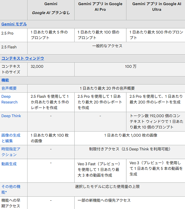 Google AI のサブスクリプションにおける Gemini アプリの上限とアップグレード