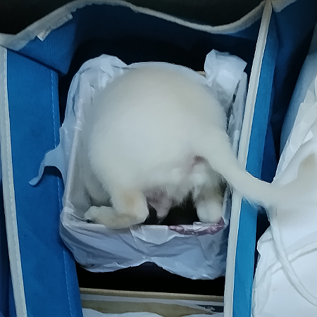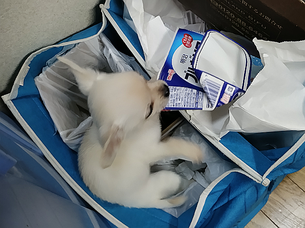 台所の「リサイクル分別」を漁(あさ)っています。