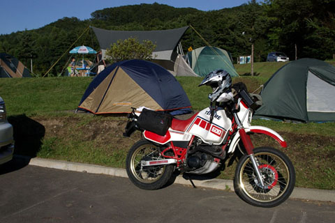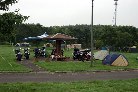 5時前に別海町へ到着するも、地図を見ながら、しばしウロウロ。主要幹線からの進入口に案内板があってもよさそうなもんだけど、「キャンプ場はこっちだよ」てな看板が無い。有ったのかもしれないけど、キャンプ場の前へ行ってはじめて、ああここだ・・と知ったしだい。他にもウロつく車やバイクがいたので、自分だけではなさそう。別海ふれあい公園キャンプ場ともあれ受付へ、ライダーに対して、とってもフレンドリーな受付のオバチャン。温泉は修理中で入れないらしく、8kmほど離れた“しまふくろう温泉”から送迎バスが来ていて、最終便が出るところだった。「バイクの人は夕方に来ることが多いから・・」と発車時間をずらしてまで、対応しようと気遣ってくれる様子が嬉しい。でも、せっかくだけど、買出しもあるので送迎バスは、、、パス。バイクが数台寄り合ってるところへ「こんにじわ~^^」みなさん、天気のパッとしない今年の北海道を、挫けず元気に何日もツーリングしてるらしい。徹底して雨を避け、天気の良い時しか出ない自分が小さく感じた。パッパッとテントを張って、そそくさと買出しに出かける。正義の味方"スーパー フクハラ"が近づくにつれ、発作的に、、絶対にカレーが食べたい!、、と思う。「きっと一番高価なのは間違いなくウマイっいしょ、、たぶん・・」と安直な理由で、その場ではレトルトの最高峰だった中村屋の、ビーフカレー¥298をチョイス。たまにヤルささやかなゴハンシタクだし、それだけでは淋しい気もするので、昨夜の貰い物のパクリネタを思いつき、カニ入りのツミレをカゴに入れた。こうなると、翌朝の分も、、、同じ物しか頭に浮かばないところが、我ながら悲しい。気が付けばライ麦パンを、足も止めず横目でサッと取ってカゴへポイッ。かなり慣れたな・・・スーパー フクハラ。いろんな物が目移りするばかりで、しばしウロウロ。幸運なことに、トッピングぐらいは変えようと、急に少しだけ頭が回ったりしてwポテトサラダとスライスハムを挟んで、笑顔で食べようと閃いたり・・。テントへもどると、姿の見えなかった方々もお揃いで、おのおのコンロを持ち寄り輪になって夕食が始まった。段取りの都合上、自分は口だけ輪に入りながらテントの前室で飯炊き。札幌GSX-R1000さんから、別海名物だというポークチャップを振舞われ、その濃厚な味わいに、、たまらずにビールを・・・ああ、、温泉への出動はお預け。いつもより一段小さい鍋でゴハンを炊いてみたら、、あら失敗^^!つみれ汁は?というと、、味噌もってなかった^^!化学調味料と塩でガマン。インスタントの、あさげ使えばよかったか?まあいい、最初からそういうつもりだったことにするw。カレーも、、、イマイチ、、、カレーはやっぱりカレーメーカーか?それらイマイチセットを持参して皆の中に入る。京都ZZR1400氏が仕入れてきたという、厚岸の焼き牡蠣やら、根室の花咲ガニをご馳走になる。甲羅は回し食い、、このイージーさが楽しい。ナマのハナサキやカキをガスコンロと小さな網で焼いていらっしゃる。ホゥホゥ・・・いいかもな、、こんど網もってこよ。星は出ていないけれど、穏やかな夏の夜。日常、各人を取り巻く諸事情は、その実、良くも悪くも様々だと思う。しかし、この偶然の場で歩み寄って、このひと時を共有しようとする志が、底抜けに明るく楽しい語らいを、もたらしてくれるんだろう。そんなこと当たり前、特にとりたてて分析するほどのことでもないけれど、ハスラーで出かけてた十代のころから、大きくは変わってないことに、なぜかホッとするしだい。そんな思いの中、時間があっというまに過ぎ、片付けを終え11時前になってから寝床へこもる。天気予報を確認し、最終日のルートを探るが、夕方にかけて雨にあたる可能性もあるらしい。こりゃあ、ひたすら帰還に徹することになりそう。しかし、せっかく出て来たし、という欲も出て1時間ほど地図とにらめっこ。出発間際に新ちょうしたLEDのヘッドライトが、ことのほか具合良くもあり、ついダラダラと地図に見入ってしまったのだ。これで1580円は安い、当たり! (^^)v充実感いっぱいで2日目の夜はふけ、隠れた疲労が特有の快感へ変わる。アハン、、ダウンのシュラフが心地いい・・・その4へ、つづく