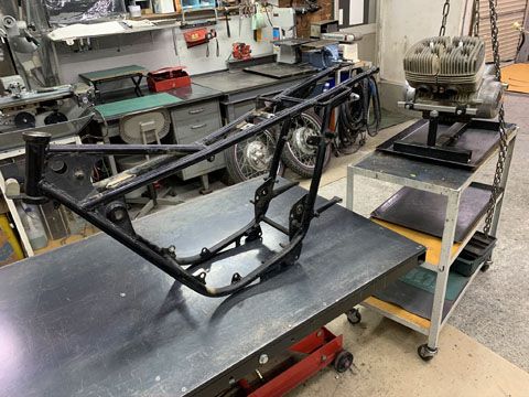 T20 に引き続き、同じくスズキの T350 のレストア開始であります。1970年、T305 の進化版ですが、実排気量は 315cc 。350 とは、随分と盛ったこと・・。320でいいと思いますがwかつて、同じカラーの T305 には何度か乗った事があり、2st パラレルツインのピーキーで強烈な加速にシビレたのは、懐かしい思い出です。欠品も無く、レストアベースとしては、かなり外観が良い車両でメッキの錆も少なめ、タンクとサイドカバーの塗装も無傷。ましてシートはオーナーが専門業者に依頼して張替え済み。とは言え、フロントフォークがほんの少ししかストロークしないという不具合や、お決まりの燃料タンク内部が錆ている事はもちろん、エンジンは始動不能。相変わらず写真では各メッキ部品の細かい錆も目立たず、綺麗に映ってますね。プラグ穴からオイル濃いめの混合燃料を注入してクランキング。キックスターターでしっかしと圧縮が感じられるので、エンジン始動を試みますが、まったく反応なし。圧縮よし、スパークプラグ交換済みで、生ガス直入れしても反応なし。基本の三要素は、「混合気 ✖ 圧縮 〇 点火 ✖」と診断。ということなので、キャブレタの分解掃除により、「混合気 ✖ → 〇」いわゆるポイント接点を研摩して、ギャップと点火時期を調整、スパークプラグ交換。大気圧中スパークの目視と、独自の「指感電点検法」にて二次電圧の味見、、ピクピク・・・経験値基準で「このシビレ方は、正しい電気である」と判断。これで「 点火 ✖ → 〇」あとは、点滴とAED(?)で蘇生。スターターレバーを操作して、キック数発。デレンデレン、、ブォーン! 白煙、ゲホゲホ・・このエンジン、特には問題なさそう。