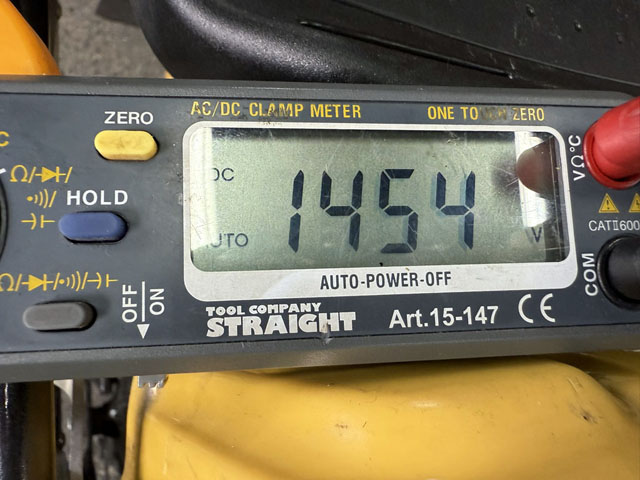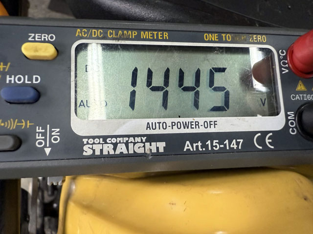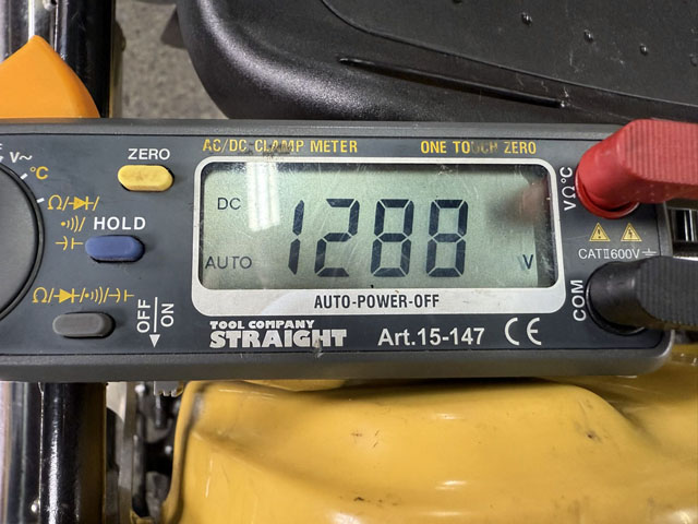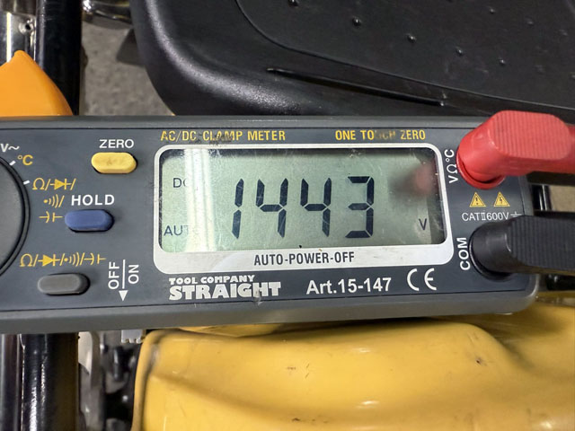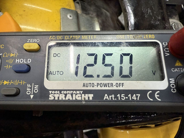 まずは、作業前にエンジン始動前の冷え切った状態で測っておいたバッテリー端子電圧。