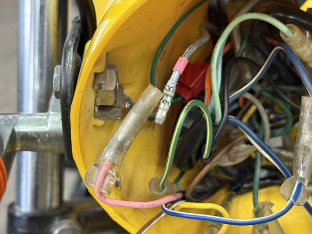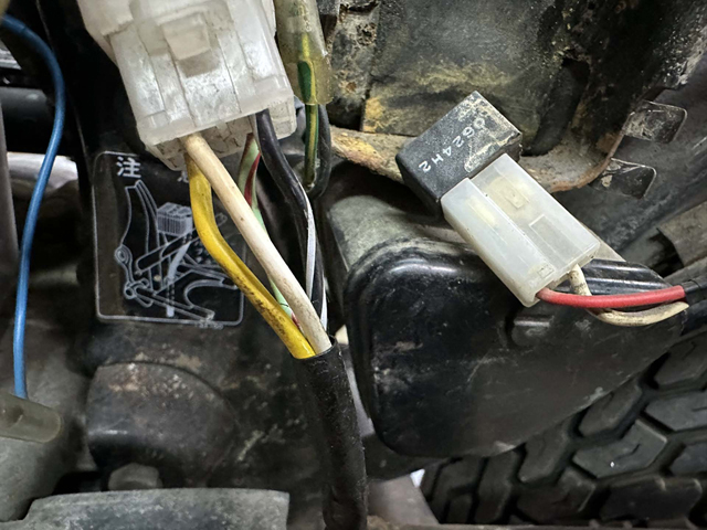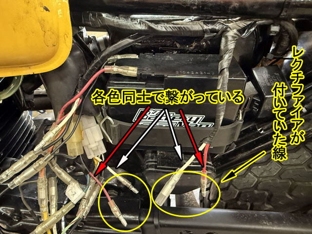 レクチファイアの取り付け位置の都合で、白と赤の2本延長線で離れて繋がってました。