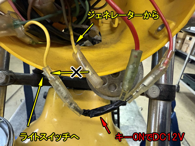 今回の作業では、 後ほどライト スイッチで、ライトON/OFF 出来る様に細工します。