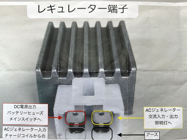 出力 の   と  をレギュレーターの 交流 入力 黄  へ接続。