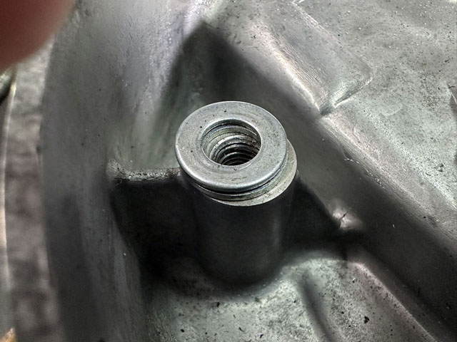 もう少し削りたいところを、この作業は削りすぎ要注意なので、少し残しワッシャーで調整。