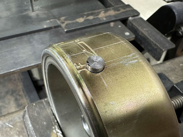 もともとあったタイミングポインター(突起)は削って撤去。
