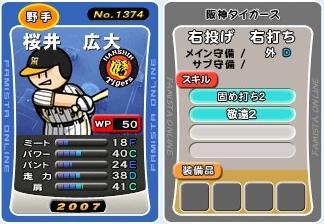 ずっと前に合成していたんですが、純正以外ではお蔵入りに近い阪神タイガース 桜井 広大まずは写真を・・・。見ての通りのスキルです。固め打ち2・敬遠2、どちらともM・Pが7up 発動前 1つ発動 2つ発動M 18→→→→25→→→→32P 40→→→→47→→→→54 ・ ・ ・変わらない所は書かない。敬遠されないんですよね~。リセットするべきだと思います?しない方が良いですかね?どちらにしろミートが低いから使いずらい。ご意見お待ちしております。
