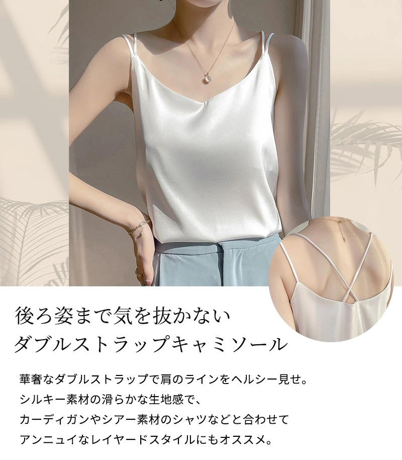 【簡単キレイなブラinキャミ】1.肌に嬉しいうっとりシルク? 2.シルクの3DCUPで美胸メイク3.ワイヤレスだかららくちん♪ 4.艶やかシルクサテンの光沢着るだけキレイ!シンプルでちょぴりSEXYならくちんブラトップが登場♪うっとりするような光沢のサテンで大人モードな装いにもピッタリ!細身のストラップで背中もデコルテも女らしさ満点デス?【呼吸する4mm厚マシュマロカップ】100%シルクの立体カップは超軽量で通気性が高く、吸湿・放湿性も抜群! 汗をかきやすい季節も快適に過ごせます♪【16匁 高密度シルクストレッチサテン】シルクとポリウレタンの絶妙な配合具合によって、「しわになりにくい」「耐久性アップ」に加え「よりよいフィット感」が得られます。\P10倍☆お買い物マラソン/シルクストレッチサテン ブラトップ カップ付き キャミソール Wストラップ シンプル シルク100%ブラカップ付き Vネック 背中クロス 細ストラップ チラ見せ 5カラー M/L/XL ctfa main p10価格:6,980円(税込、送料別) (2025/8/26時点) 楽天で購入