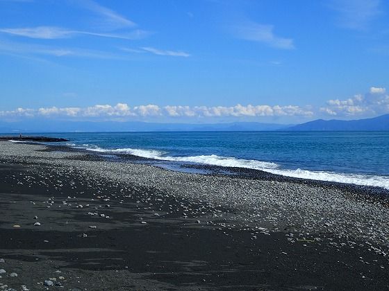三保松原の海岸は黒砂です。火山に関係するのかと思ったら違うようです。