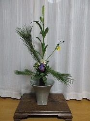 今日は阪神大震災から22年目、そして、主人の誕生日でした。レッスン帰りにスーパーで麦焼酎「いいちこ」を買って、帰って包装紙で包んで言葉を書いて主人に手渡しました。夜、三男が主人にお祝いを持って来て、ご飯を食べてから帰りました。三男からのお祝いも何と麦焼酎「閻魔」でした。しかも同じスーパーで買ったとのことでびっくりしました。写真は、今日生けた荘厳華「真の真」です。