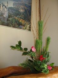 夕方近く、大阪からのお客様をお迎えしました。主人の兄のお子様たち3家族の皆様で、大人が7人、子どもが6人、車2台で来られました。とても賑やかで活気があっていいなあと思いました。お出しした物を「美味しい!」と言ってぱくぱく召し上がっていただき嬉しかったです。3姉弟同士とても仲が良く、ご夫婦もその子たち同士も仲が良くて思いやり溢れる3家族だなあと思いました。写真は、暮れに主人が作ったお飾りです。