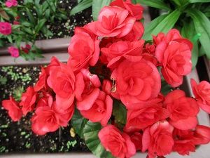 昨朝、今朝と2日連続、雨で犬たちの散歩&お墓参りに行けませんでした。長女のことが気がかりで、雨上がりの午後、モコだけ連れて車で花の生け換えとお線香立てをしてきました。いただいた樒とさ○○ガーデンの秋桜と百日草を生けてきました。暑くて、切り取ったばかりの秋桜が早くも少し萎れてしまっていました。明朝には水が揚がってくれていたらいいのになと思います。写真は、満開の深紅のベゴニアです。