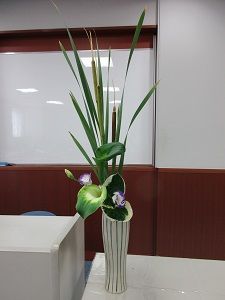 習字のお稽古に行ってから、書の展覧会を観に行ってきました。知っている先生方のお名前がたくさんあって、皆さん頑張っておられるなあと思いました。花もいくつか生けられていたので聞いてみると、どれも前司所長先生の素敵な作品でした。