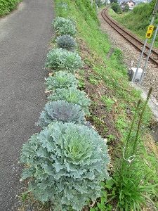 昨夏の終わりに種蒔きをして、秋に育った苗を植え付け、冬から春の間とても綺麗だった葉牡丹。今年は、何と夏が来ても生き生きしていてとても綺麗でした。そのさ○○ロードの葉牡丹を今日やっと抜きました。長いこと楽しませてくれた葉牡丹に感謝です。今夜から雨になりそうなので、雨上がりには葉牡丹の後に花苗を植える予定です。写真は、抜く前の葉牡丹と抜いて並べた葉牡丹です。