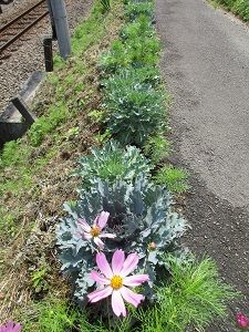 今年初めてさ○○ガーデンの百日草が花開きました。向日葵もぐんぐん伸びていて開花が楽しみです。さ○○ロードのずらり並んだ葉牡丹、花が咲いたのは抜きましたがまだまだ花が咲かずに葉が生き生きとして綺麗な珊瑚葉が沢山あって抜けないでいます。秋桜が大分背が伸びて、次々花も咲いています。