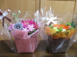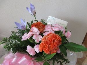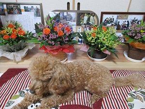 徳島市内在住の長女の友人が、長女に会いに来てくださいました。アレンジメントを2つとお菓子をお供えに持って来てくださいました。アレンジメント、2つともどちらも可愛くてどちらかを選べなくなって、結局2つとも買ってしまったとのこと。お仏壇の長女にいちばん近い所に並べてお供えしました。主人と二男とモコと一緒にお墓参りをして、讃岐うどんを食べてから帰られました。嬉しかったです。