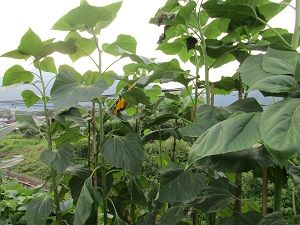 午後、習字の稽古に行きました。ぼちぼち書き溜めていた8種の作品を先生に見ていただき、それぞれいちばんいい作品を選んでいただきました。8月は昇試課題もあって、次回までに「書き直し」があるので頑張りたいです。写真は、玄関先の向日葵です。