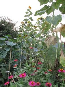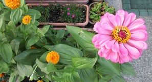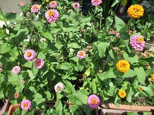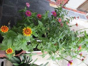 夕べ、義兄からの電話で、私が苗を植えた百日草が大きくなって咲いているから見に来てほしいとのこと。今朝の犬たちの散歩&お墓参りの後で、見に行ってきました。義兄と義姉が綺麗に咲いた花を愛でて喜んでくださっていてとても嬉しく思いました。