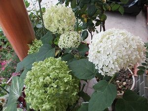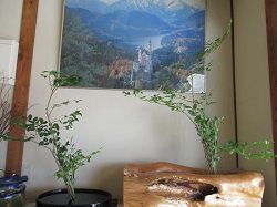 午後レッスンの後、玄関の花を生け換えました。昨日、休まれていた同じクラスの方が、花材(夏櫨&桔梗)をどうぞ使ってくださいとのことだったので2杯分生けさせてもらいました。本当は釣瓶生けだったのですが、盛り花用花器に生けました。夏櫨がたくさんあったので、他に瓶花2杯も生けました。涼しい感じに生けられてよかったです。