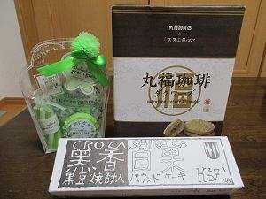 昨日の朝、故郷丹波の友人からのプレゼントが宅急便で届きました。今日のお昼には、すっかり元気になられたK先生が寄ってくださって美味しい物を箱いっぱいくださいました。友達ってありがたいなあと思いました。