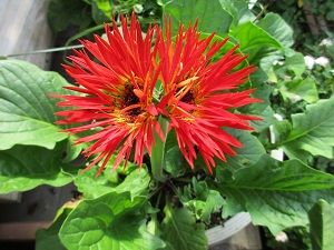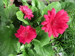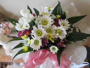図書館で紙芝居の借り直しをした後、花屋さんへ竜胆を買いに行きました。でも、仕入れ中のため竜胆は夕方にならないと入荷しないとのことで、明朝買いに行くことにしました。前回生けてから8日も経ちました。玄関も長女の前もまだ綺麗ですが、そろそろ生け直したいと思います。涼しくなって、花が保つようになったことが嬉しいです。写真は、茎が1つで花が2つの合体ガーベラです。
