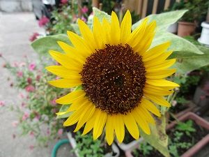 2か月に1度の歯科検診の日で、午前10時に医院に行きました。どんより曇っていたので、モコも連れて行き、駐車場の車内で待ってもらっていました。診察が終わって会えた時のモコの嬉しそうな表情と喜びようがとても可愛かったです。写真は、みんな疾っくに枯れてしまったのに、玄関前に1輪だけまだ咲いている向日葵です。