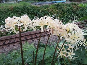 家の近くの信号のある横断歩道のところで、3人の方が交通立哨をしてくださっていました。今日から秋の交通安全運動が始まったのだと分かりました。何時から立たれていたのかは分かりませんが、私とモコとマロンが渡ったのは8時過ぎ。ご苦労様と思いながら、朝早く登校して立哨していた時のことを懐かしく思い出しました。写真は、さ○○ガーデンのヒガンバナです。