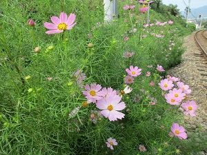 ようやく台所の片付けに取りかかりました。先ずは食器の片付けです。今使っている物、まだ使いたい物、もう使わない物に区別しながら、使わない物は処分袋に入れ、使いたい物は紙でくるんで段ボールに入れました。2つの大きな食器棚も処分の予定です。食器以外にも色々な物がいっぱいの台所の片付けには、まだまだ時間がかかりそうです。写真は、さ○○ロード下の斜面のコスモスです。
