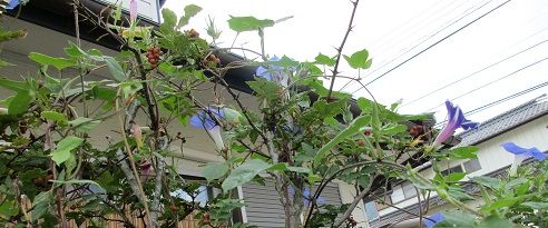 3日間の書展が終わり、搬出に行ってきました。展示終了の1時間前に行って、作品をじっくり見せていただきました。搬入展示には時間がかかりましたが、片付けはあっという間に終わりました。写真は、涼しくなって9時半なのにまだこんなに綺麗だった朝顔です。