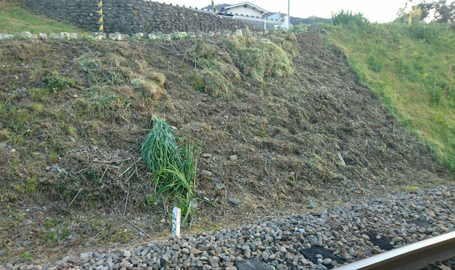 快晴の素晴らしい天気の下、午後4時前から1時間余り、さ○○ロード下の斜面の草刈りをしました。今日は10分の1ぐらいしかできなかったので、ぼちぼち刈って綺麗にしたいなと思いました。早くもコスモスの苗が出ていたのにはちょっとびっくり。写真は、今日の草刈りの跡とさ○○ロードの水仙と葉牡丹です。
