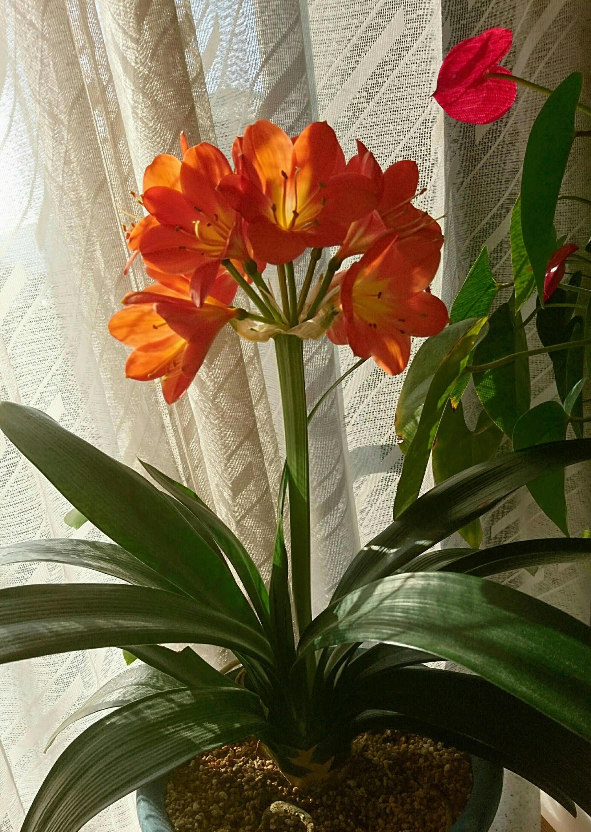 朝は曇っていましたが、だんだん回復し、午後は久しぶりにいいお天気になりました。朝の犬たちの散歩&お墓参りに出かけただけで、その後は狭い家の中をうろうろ。昨日、自主練頑張り表を作ってぼちぼち。やっぱり、先生やメンバーさんと楽しく一緒に練習したいと心から思います。写真は、主人の部屋(客間)で咲いた君子蘭です。