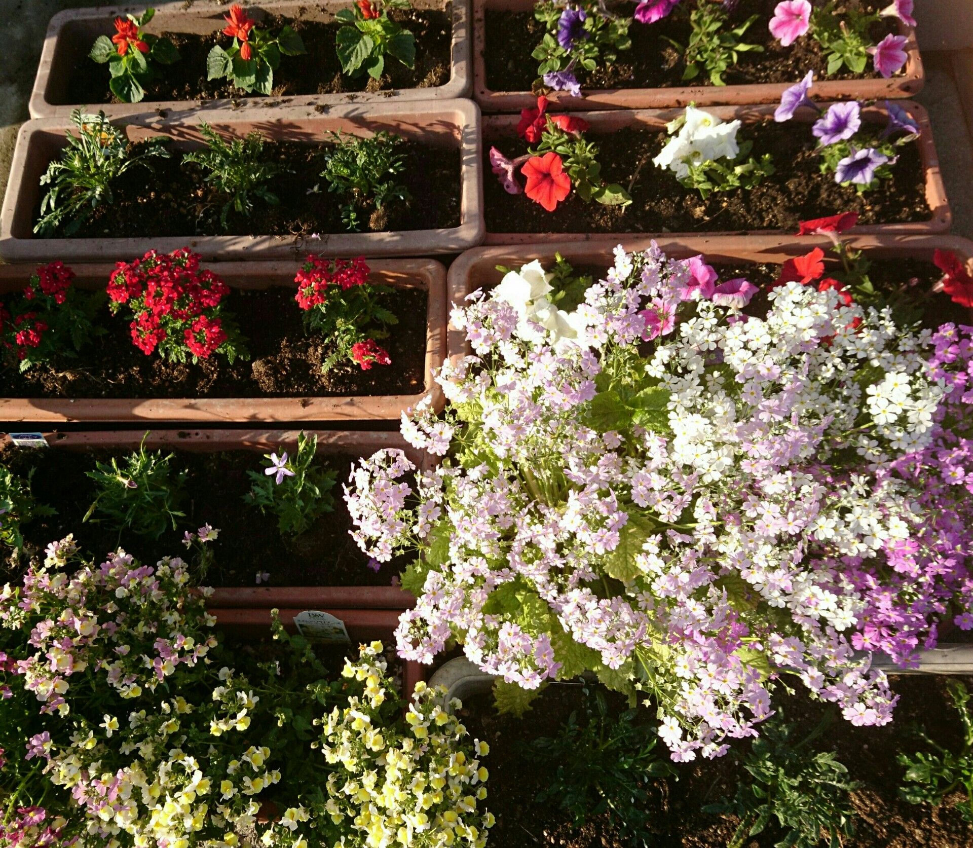 2、3日前からぽつぽつ出だした百日草の芽。今日は、こんなに沢山…!蒔いてちょうど1週間です。少しずつ大きくなって、本葉が4、5枚になったら移植ポットに植え替えます。今年は、「百日草」と「ポンポン百日草」の2種を苗箱2箱に蒔きました。成長が楽しみです。下は、満開のネメシア・アロマンスです。