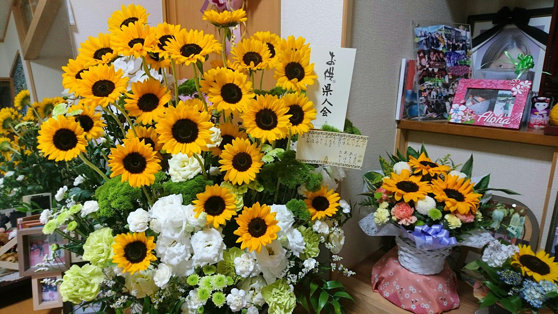 長女の命日。「県人会」(飲み友達)の19人から、豪華な向日葵のアレンジメントが届きました。大きくて重くて凄く綺麗でびっくりしました。皆さん、ありがとうございました。