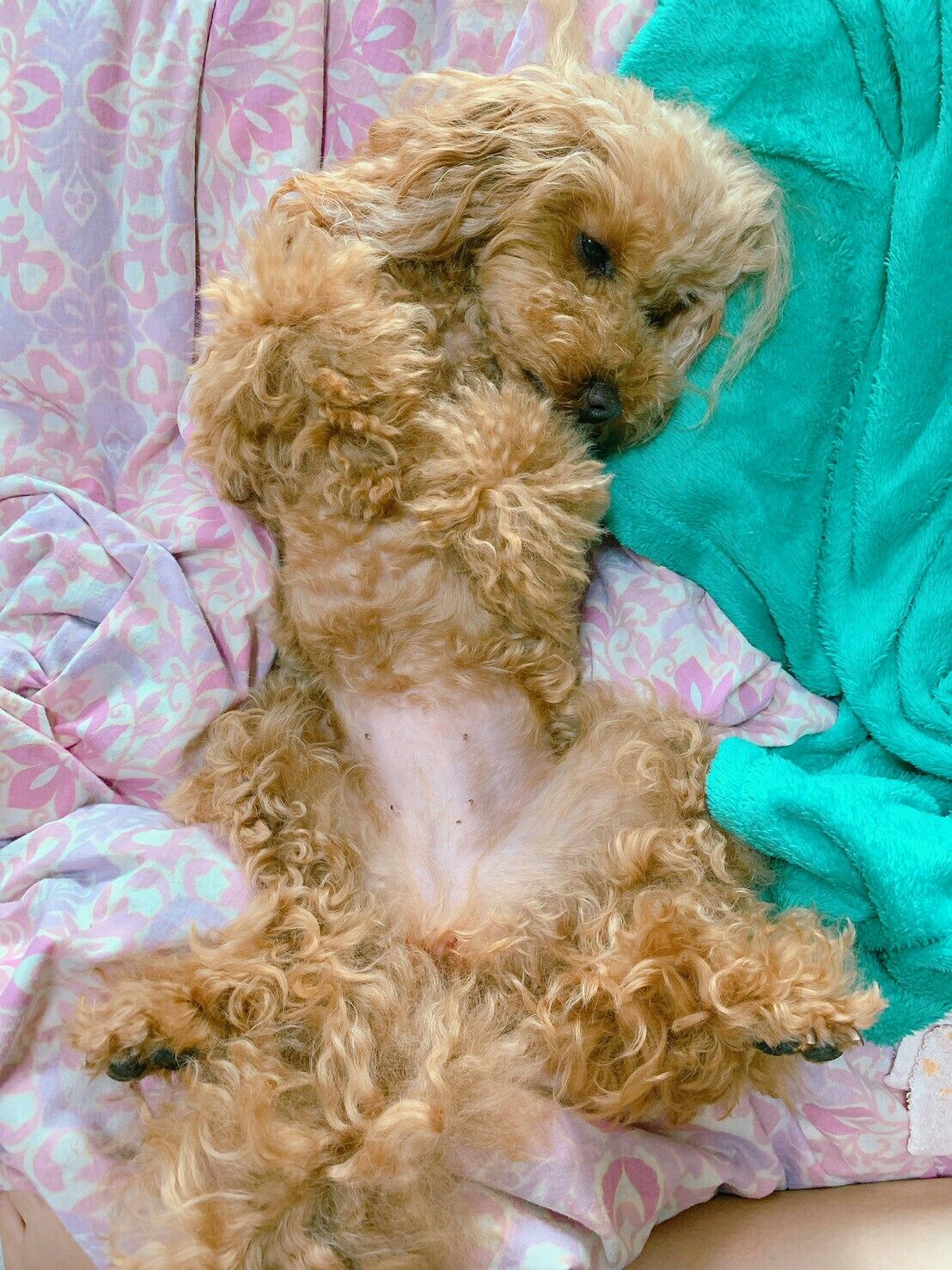 午後、主人の髪のカットとカラーをしました。前回まで行っていた理容店の店主さんの体調がお悪いみたいで、お店は閉まったままとのこと。とてもお安くカットしてもらっていたのに…!そこで、スキルカットで短く2cmで刈り上げました。お店よりさらにお安くタダで綺麗に仕上がってよかったです。写真はお腹丸出しの艶かしいモコです。