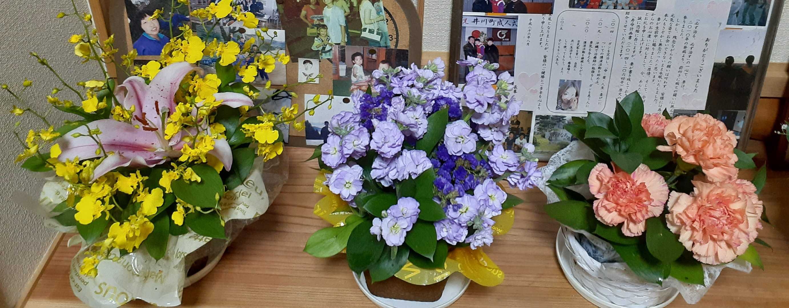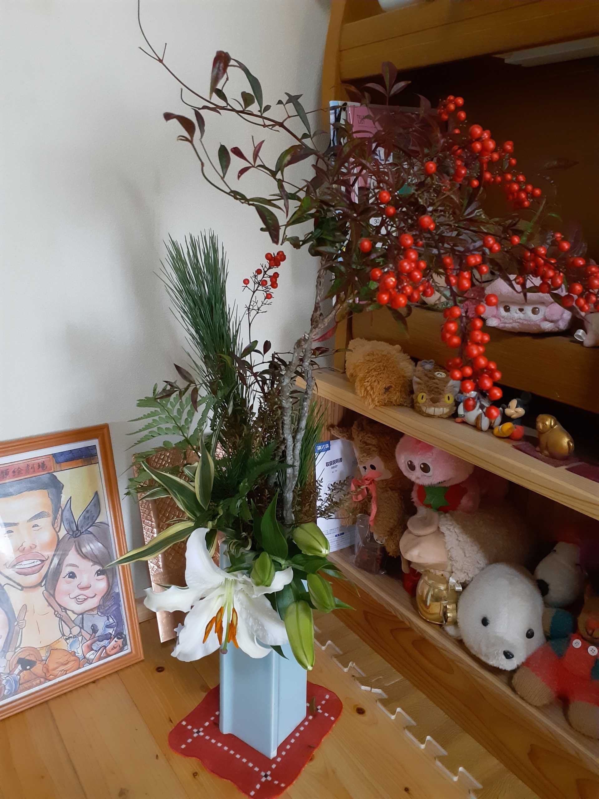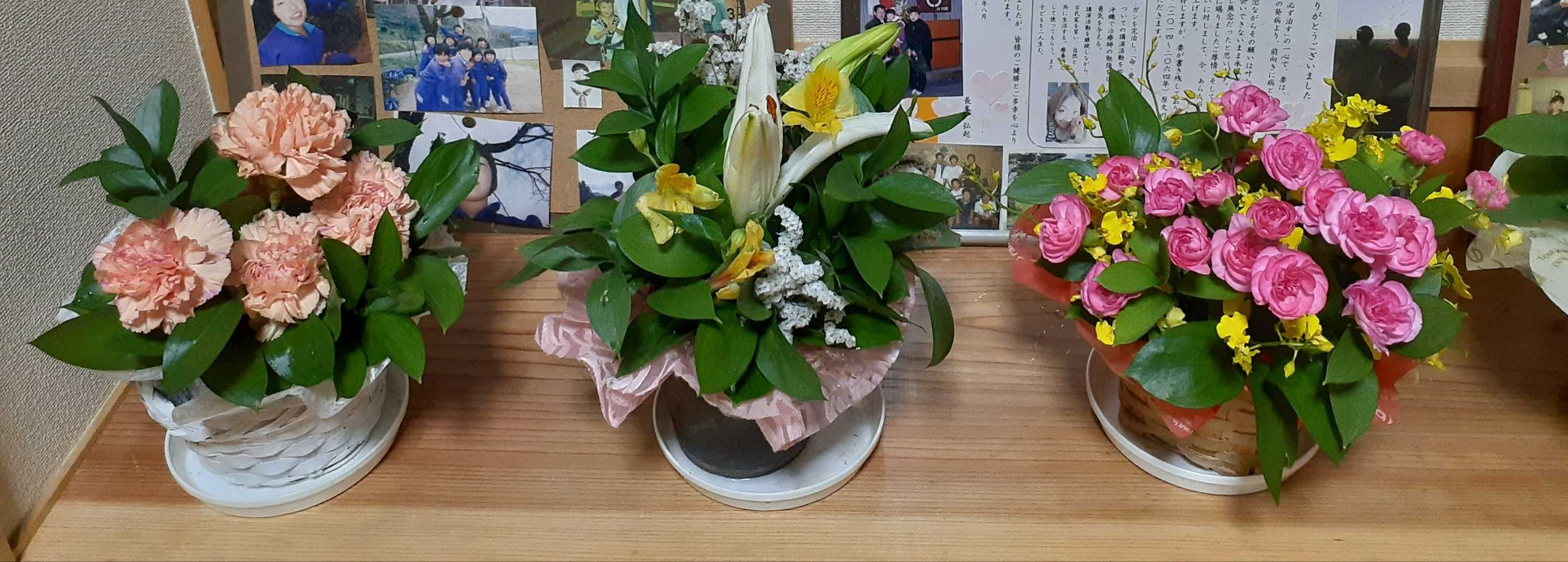午後、月1回の美容室に行った後、漢字条幅の書き直しとアレンジメント8つの生け換えをしました。沢山の花、長女が喜んでくれたら嬉しいです。