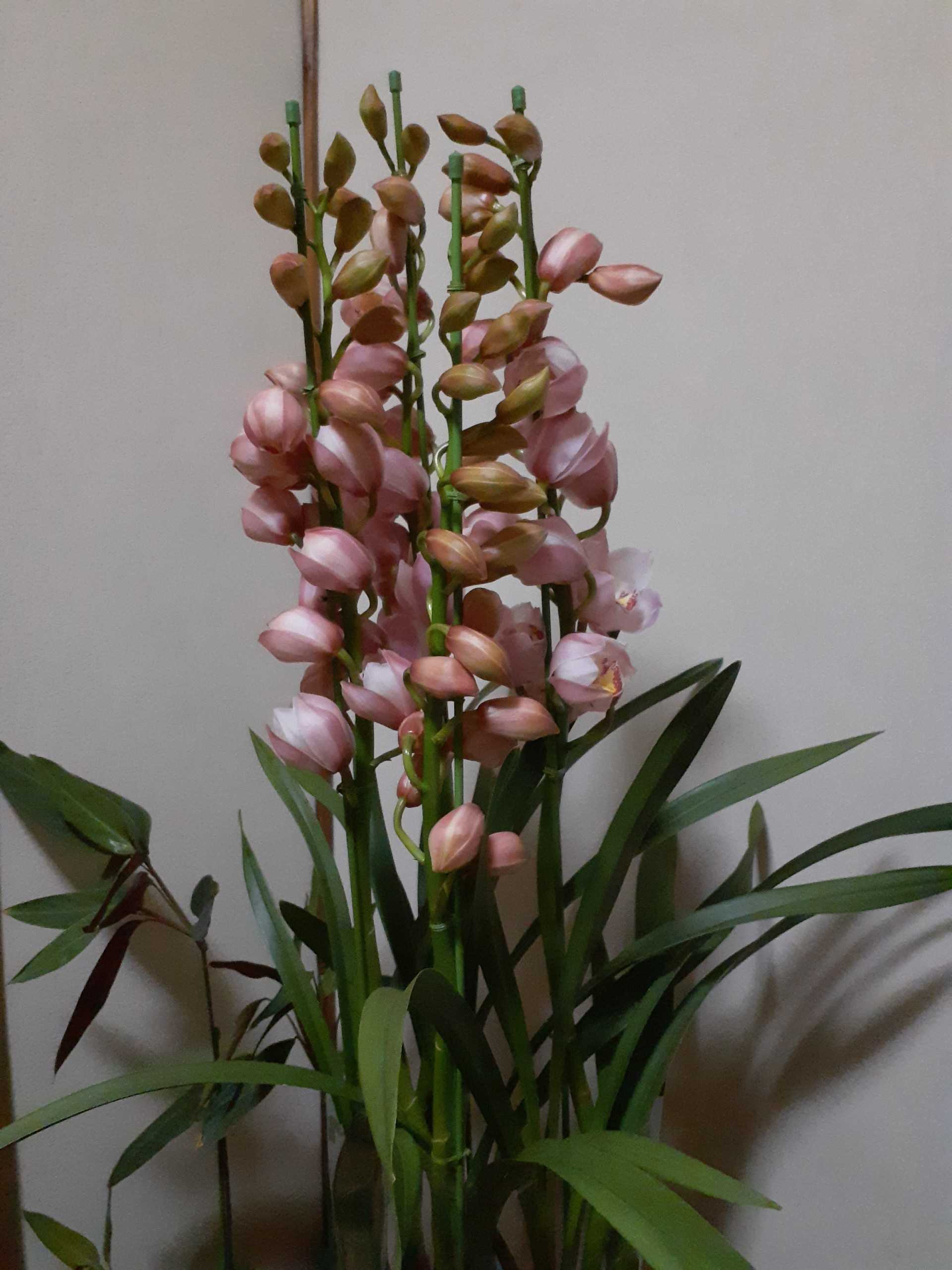 どこにも出かけず賀状書きに集中する予定でしたが、あんまり集中できず残ってしまいました。夕方、とりあえず書けた分を投函してきました。残りは今晩仕上げて、明朝投函予定です。写真は、昨日、三男が今年も持ち帰ってくれたシンビジウムです。