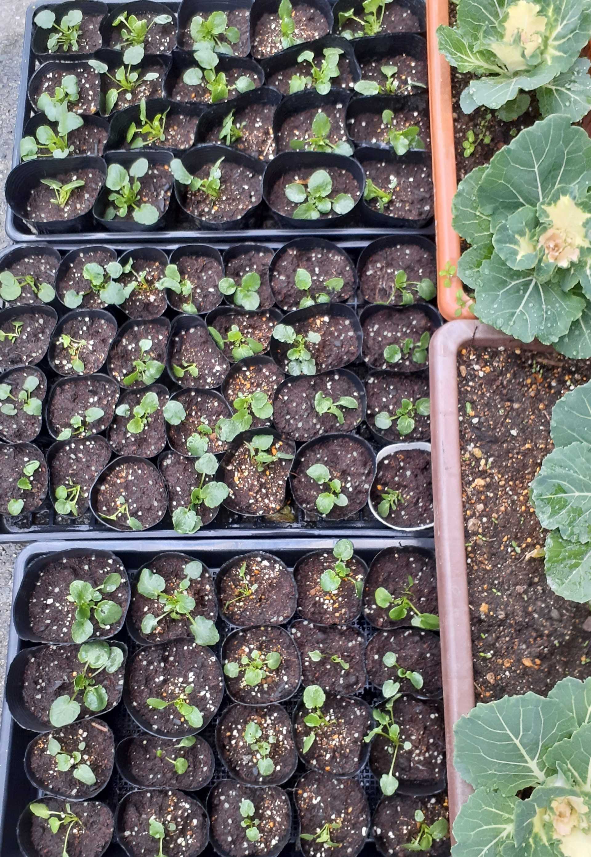 午後、花の土を買ってきて、苗箱で少し大きくなったパンジーをポットに移植しました。残った苗は、苗箱の中で離して植え直しました。いつ頃、どんな色のパンジーが咲いてくれるか、とても楽しみです。