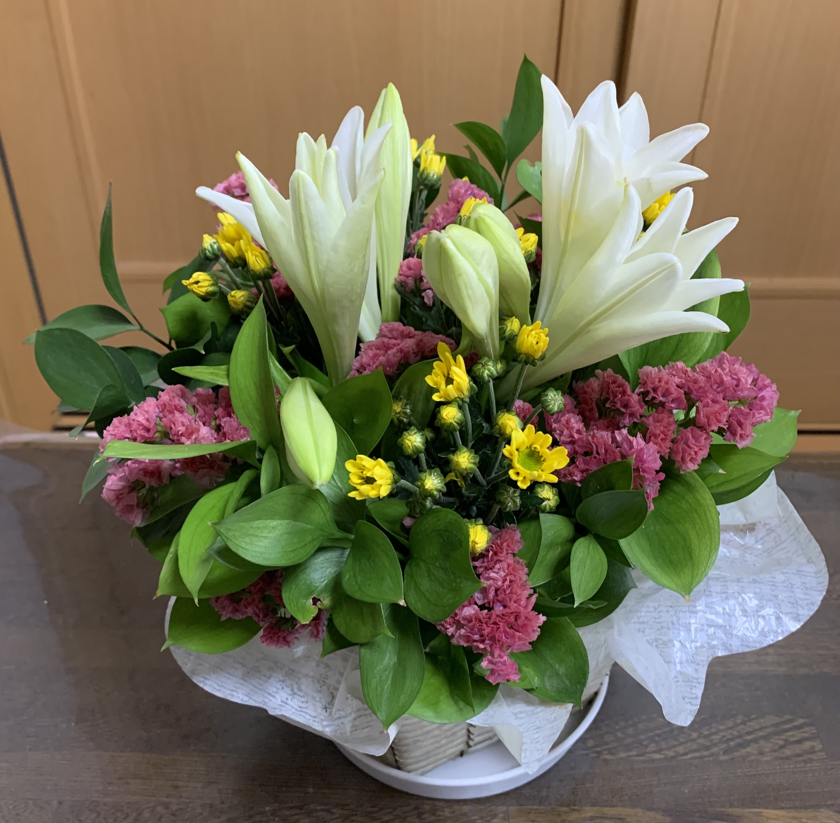午前10時から嵯峨御流華道池田司所の総会がありました。昨年は友人が議長。今年は私が議長を務めさせて頂きました。沢山の先生方の前で緊張しましたが、何とか終えることができました。私の席のマイクの横に置かれていたお花がとても可愛く綺麗で癒されました。