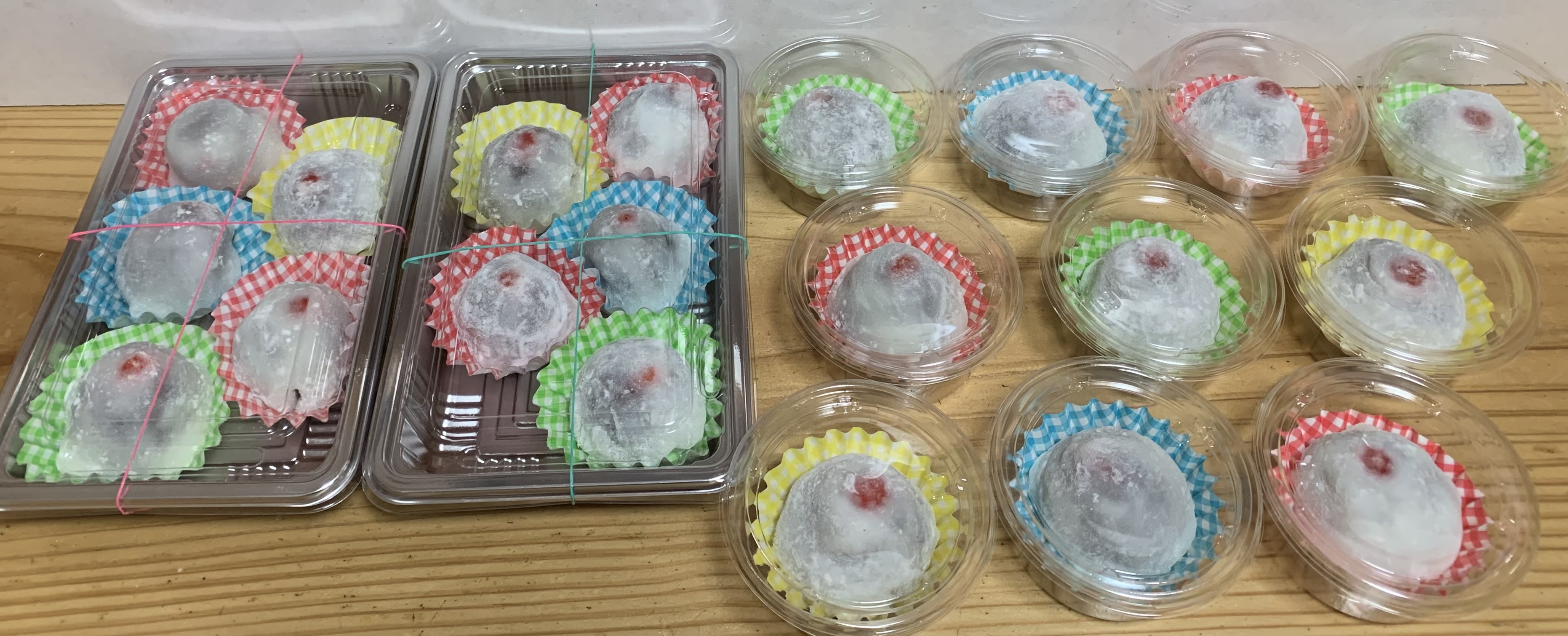 合同句会の日。支部句会には毎回手作りスイーツを持参していますが、合同句会にはスイーツを持って行ったことがありませんでした。今回、初めて苺大福を持って行って、皆さんに喜んでもらえてとても嬉しかったです。帰って、営業停止4日間を乗り越え今日から再開なさった町内唯一のレストランに家族3人でランチに行きました。店の方のお話を聞き、大変だったなと……。写真は、午後遅く、明日来てくれる三男一家のために作った大きめの苺大福と久しぶりにカットしてもらったモコとイスバのランチです。