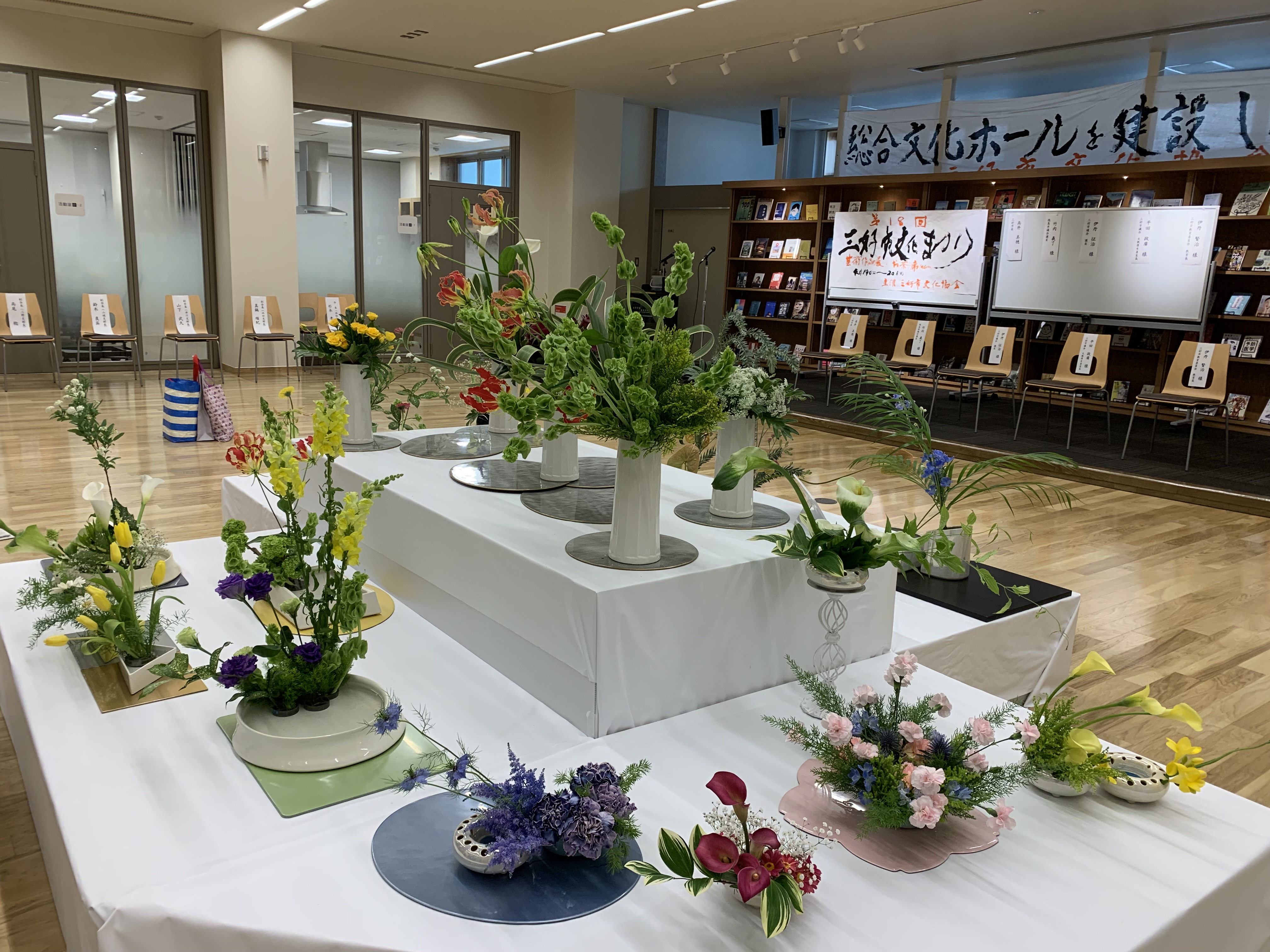 9時半にミライケに行って、市文化まつり作品展の会場準備をしました。初めに、机や花台を並べて、白布などを敷いて花が生けられるための準備をしました。その後、11時過ぎ時から生け込みでしたが、私の担当は1時過ぎからとの事で、書の展示を頑張りました。結局、両方が忙しくて、お昼ご飯も休憩もパスしました。16時半にやっと帰れて遅いお昼ご飯を頂きました。明日と明後日、沢山の方に見て頂けると嬉しいです。