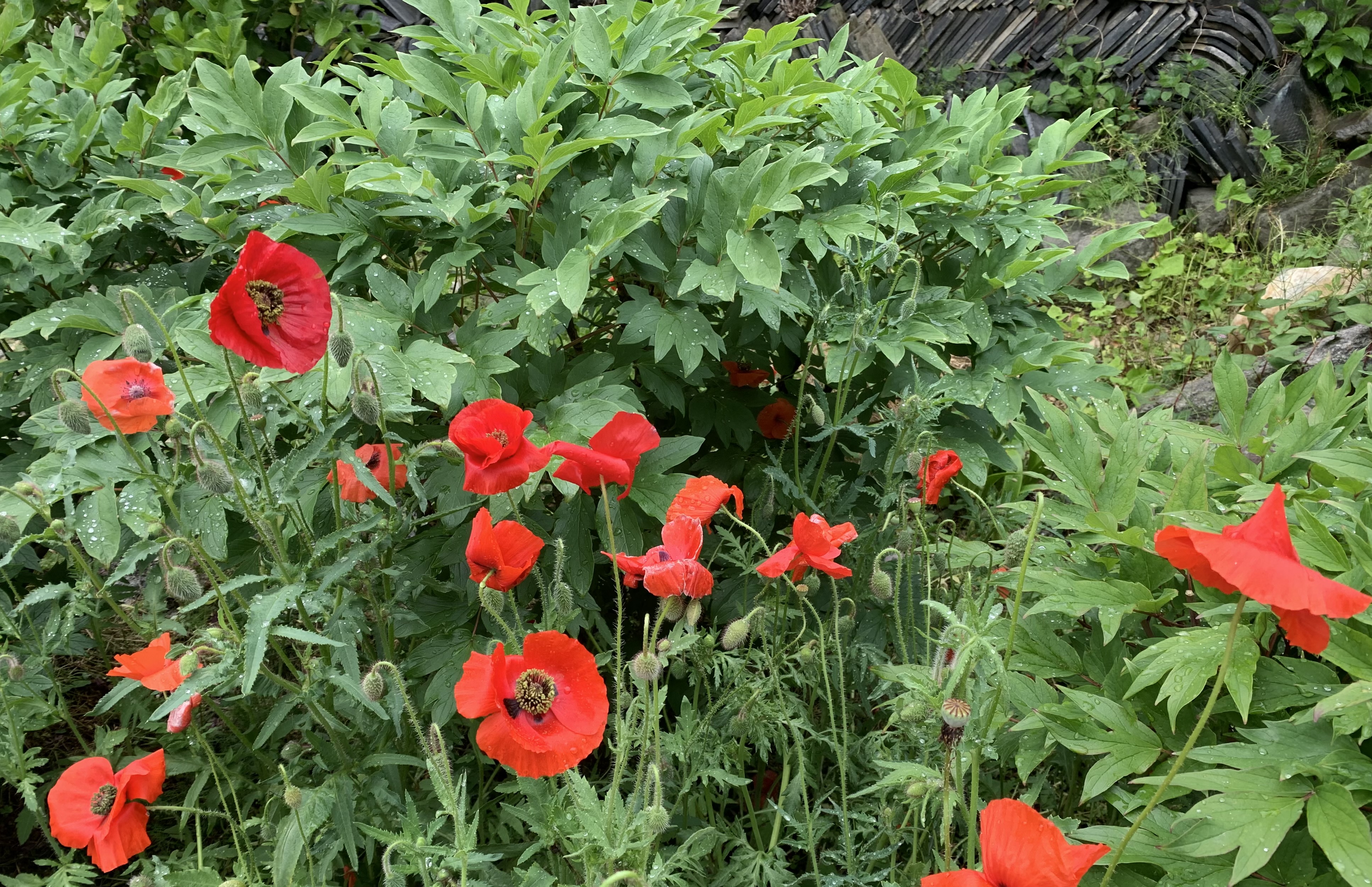 昼前に、出品票を貼った書8課題を先生宅に行って提出しました。直しの2課題は、選んで頂いてから落款を押して出品票を貼りました。先生が他の方の作品と一緒に送付してくださいます。5月号が提出できてやれやれ。今度は、6月号に取りかかり、ぼちぼち仕上げるつもりです。写真は、先生宅の花たちです。