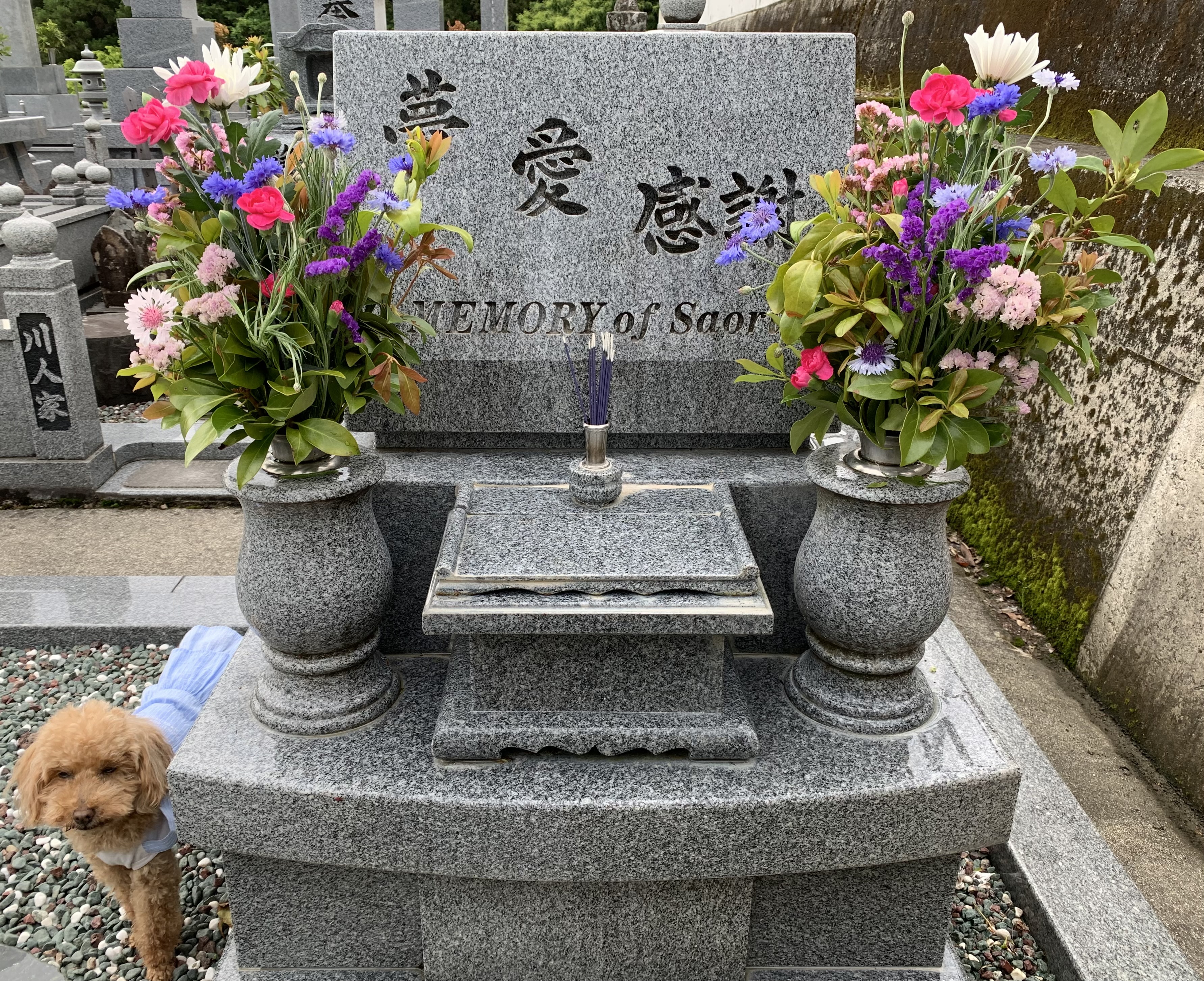 以前に菊をヒヨに啄かれるようになって、お墓に菊を生けるのを止め、スターチスとかカーネとか菊以外の花を生けて来たのですが、久しぶりに白菊を1本だけ生けてみました。しかも高めに……。実験です。また啄かれたら、やっばり菊は止めようと思います。どうか、もう啄かれませんように……。