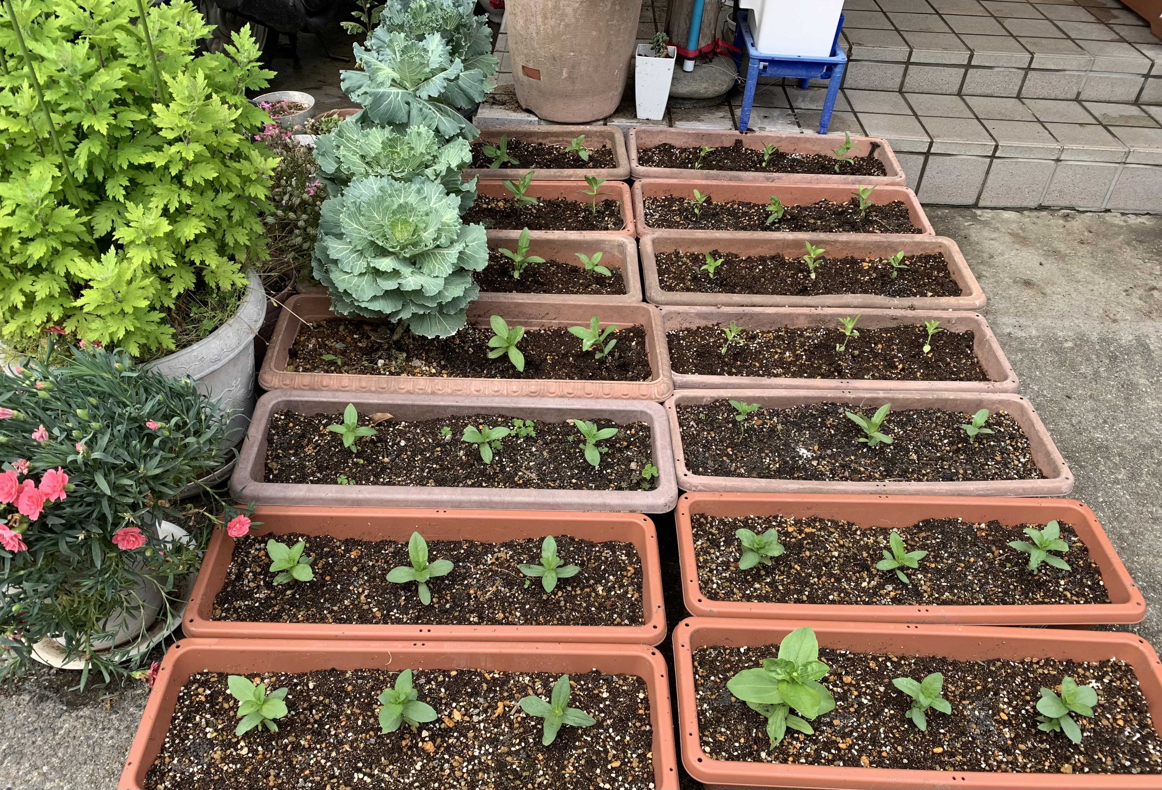 午前中に、玄関前に百日草の苗を植えました。今年は種まきトレーに種を蒔いて、ポット苗に移植しないまま、種まきトレーからブランターに移植しました。苗が欲しい方にも、トレーのままお渡ししました。近々、さおりロードにも移植する予定です。草抜きをして、耕して、土を入れて……。