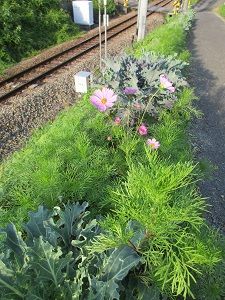 今年初めてさ○○ガーデンの百日草が花開きました。向日葵もぐんぐん伸びていて開花が楽しみです。さ○○ロードのずらり並んだ葉牡丹、花が咲いたのは抜きましたがまだまだ花が咲かずに葉が生き生きとして綺麗な珊瑚葉が沢山あって抜けないでいます。秋桜が大分背が伸びて、次々花も咲いています。