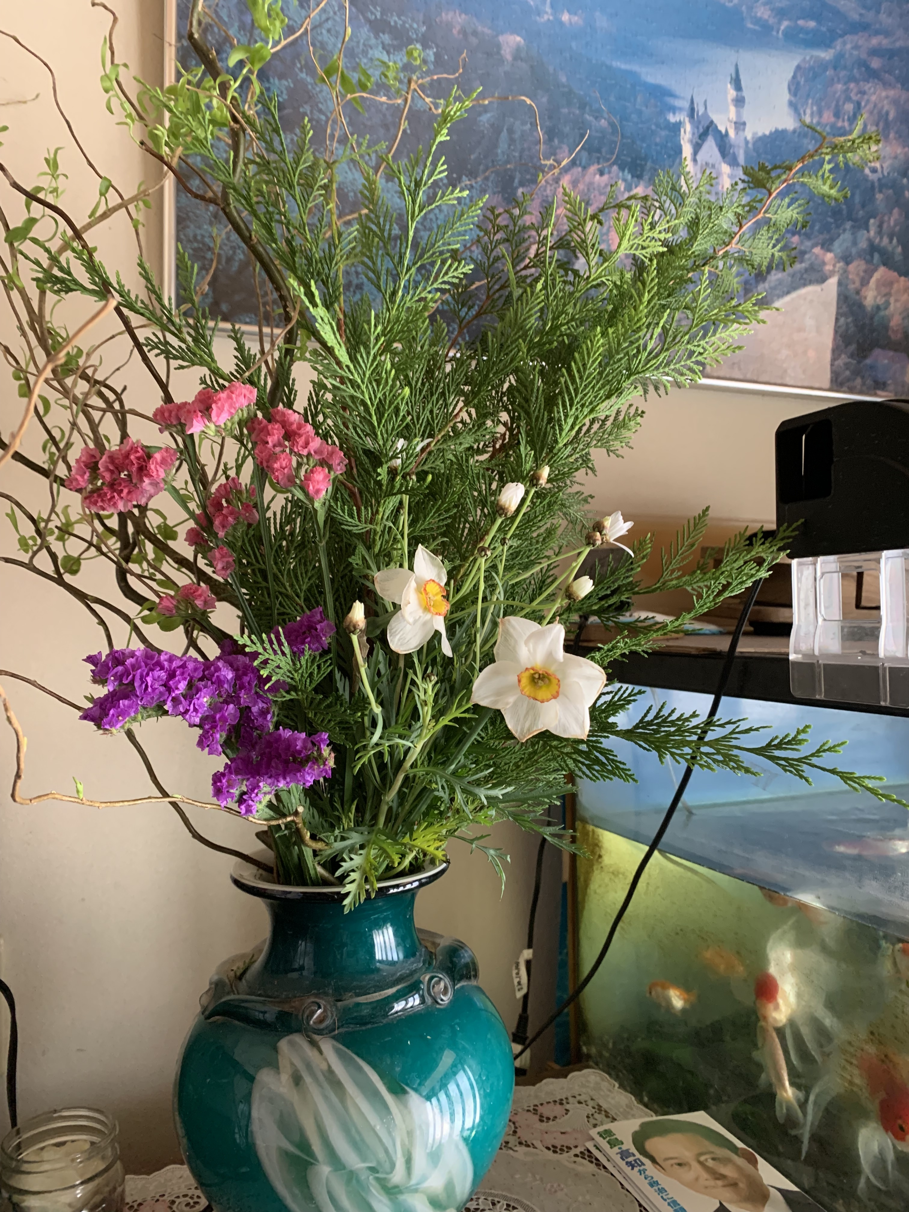 午前10時から嵯峨御流華道池田司所の総会がありました。昨年は友人が議長。今年は私が議長を務めさせて頂きました。沢山の先生方の前で緊張しましたが、何とか終えることができました。私の席のマイクの横に置かれていたお花がとても可愛く綺麗で癒されました。