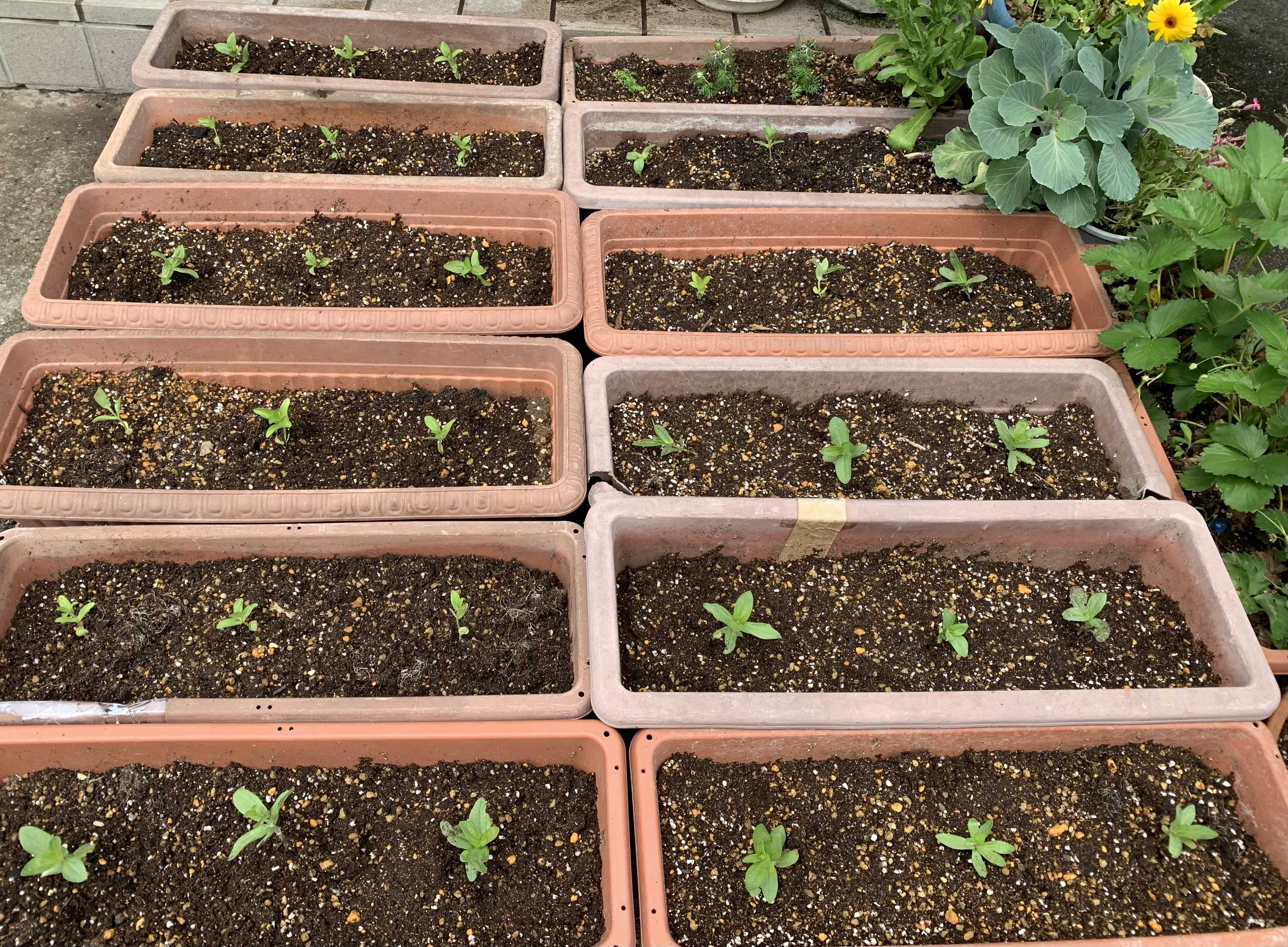午前中に、玄関前に百日草の苗を植えました。今年は種まきトレーに種を蒔いて、ポット苗に移植しないまま、種まきトレーからブランターに移植しました。苗が欲しい方にも、トレーのままお渡ししました。近々、さおりロードにも移植する予定です。草抜きをして、耕して、土を入れて……。