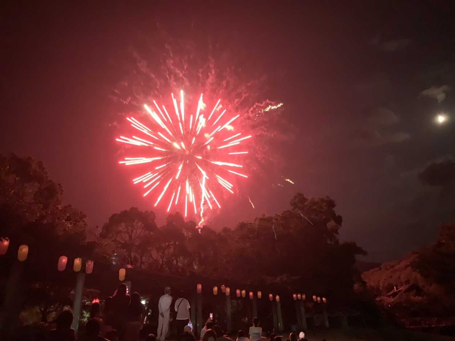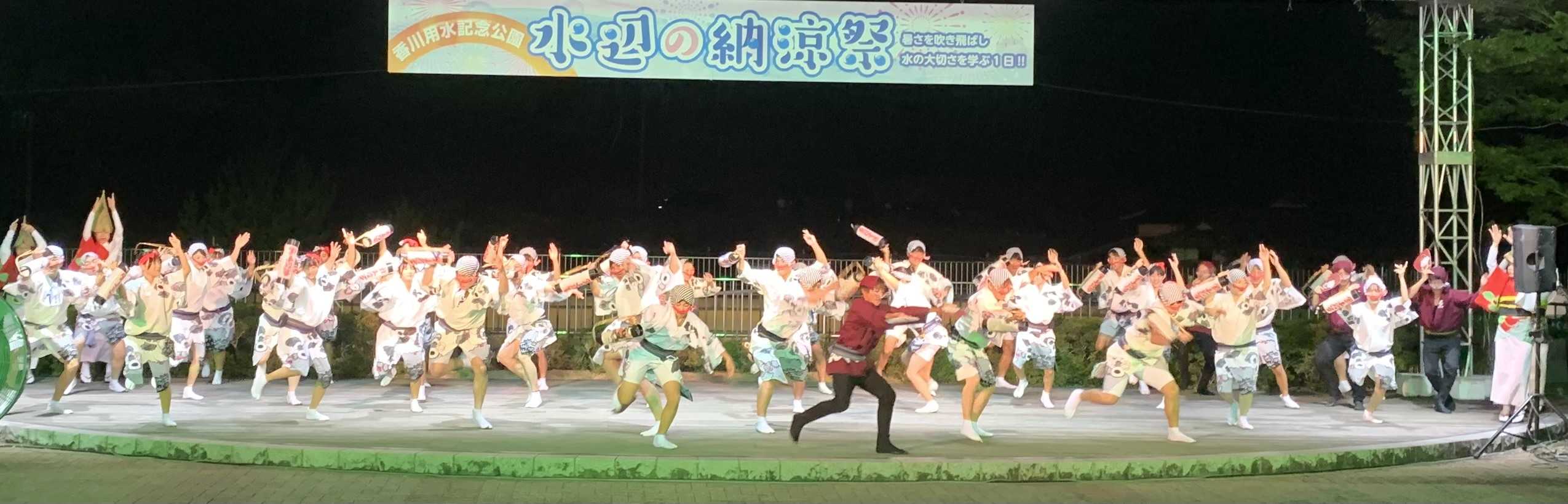 香川用水記念公園で開催された水辺の納涼祭にえびす連(阿波踊り)が参加しました。10時から21時まで色々のショーがあり、20時からが阿波踊りでした。そこで、二女の踊りを見に行き、最後の20時半からの沢山の花火を見てから一緒に帰って来ました。写真は、初めて見た財田町の鍬おどりとえびす連の踊りと花火です。真ん前のいい席で見ることができてよかったです。