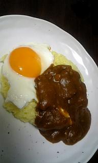 今日は夫のリクエストでカレー カレー屋さんのページを見たらしく急なリクエストなんですよ仕方無い1枚375円のステーキ用のオージービーフをカレーに確かお土産のサフランがあったはず 真似して作ってみましたサフランライスはリング状になっていてその中からカレーがあふれていま~~す(ボルケーノ?!)少し辛めですがとろとろの黄身を一緒に食べればOKおいしかったね
